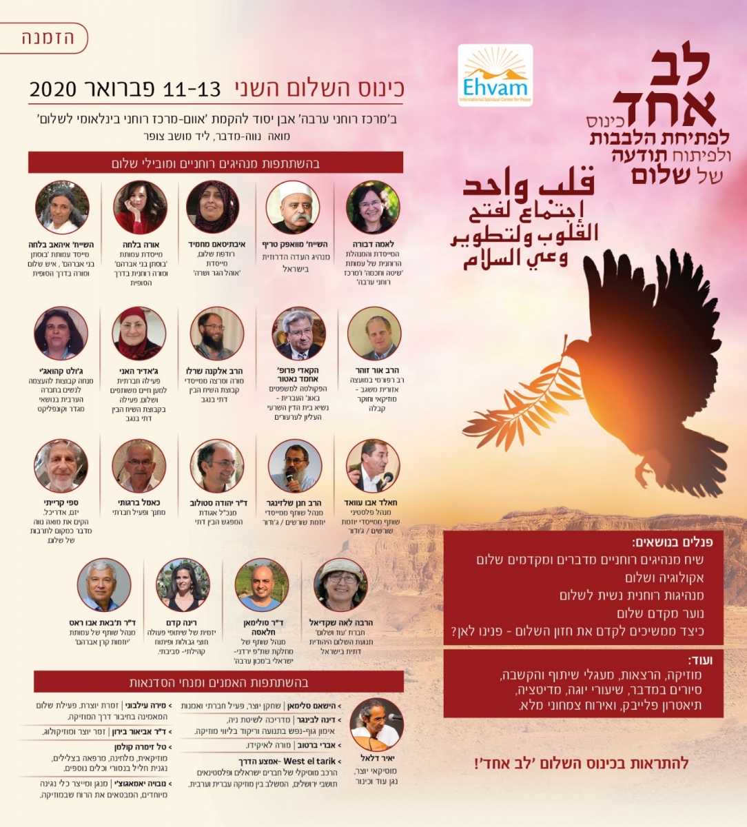 כינוס השלום השני לפתיחת הלבבות ופיתוח תודעת שלום, אבן יסוד להקמת 'אוום-מרכז רוחני בינלאומי לשלום'.בכינוס ישתתפו המנהיגים/ות הרוחניים/ות ומובילי/ות השלום הבאים: